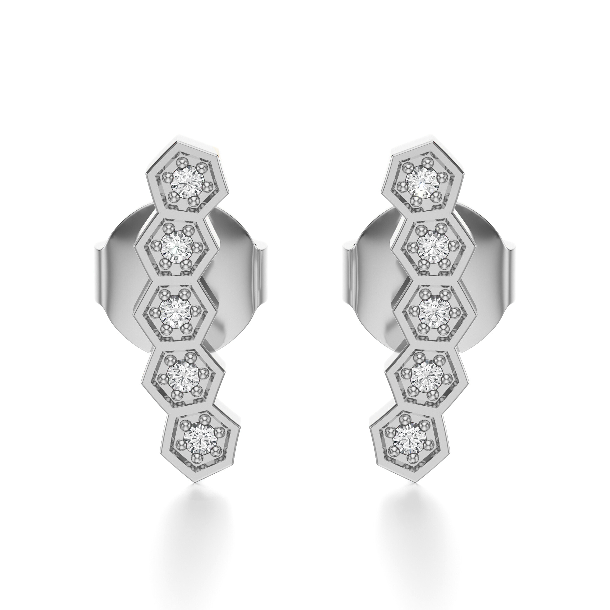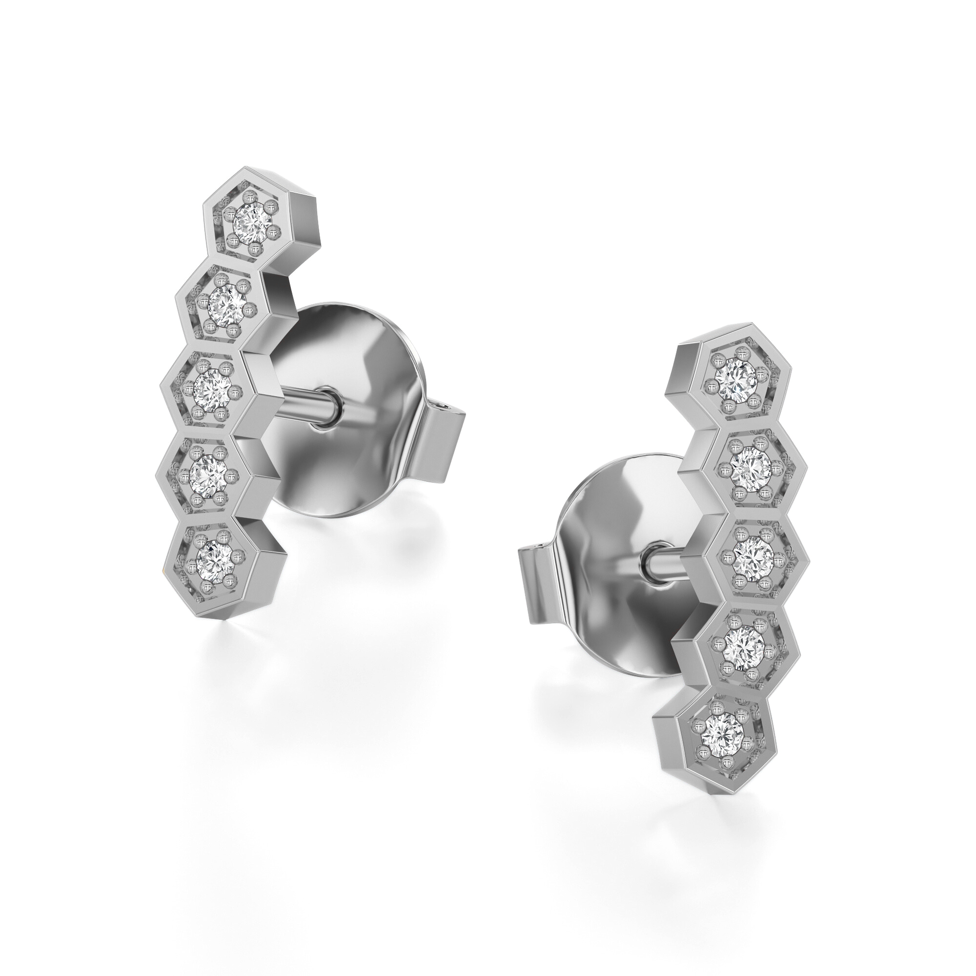 Kolczyki z diamentami w białym złocie to wyjątkowa biżuteria, w której minimalistyczny design spotyka się z ponadczasowym blaskiem. Ich forma inspirowana została strukturą plastra miodu – symbolem harmonii, porządku i naturalnej doskonałości. Regularne sześciokąty, osadzone w precyzyjnej oprawie z białego złota, prezentują się niezwykle nowocześnie i subtelnie zarazem.