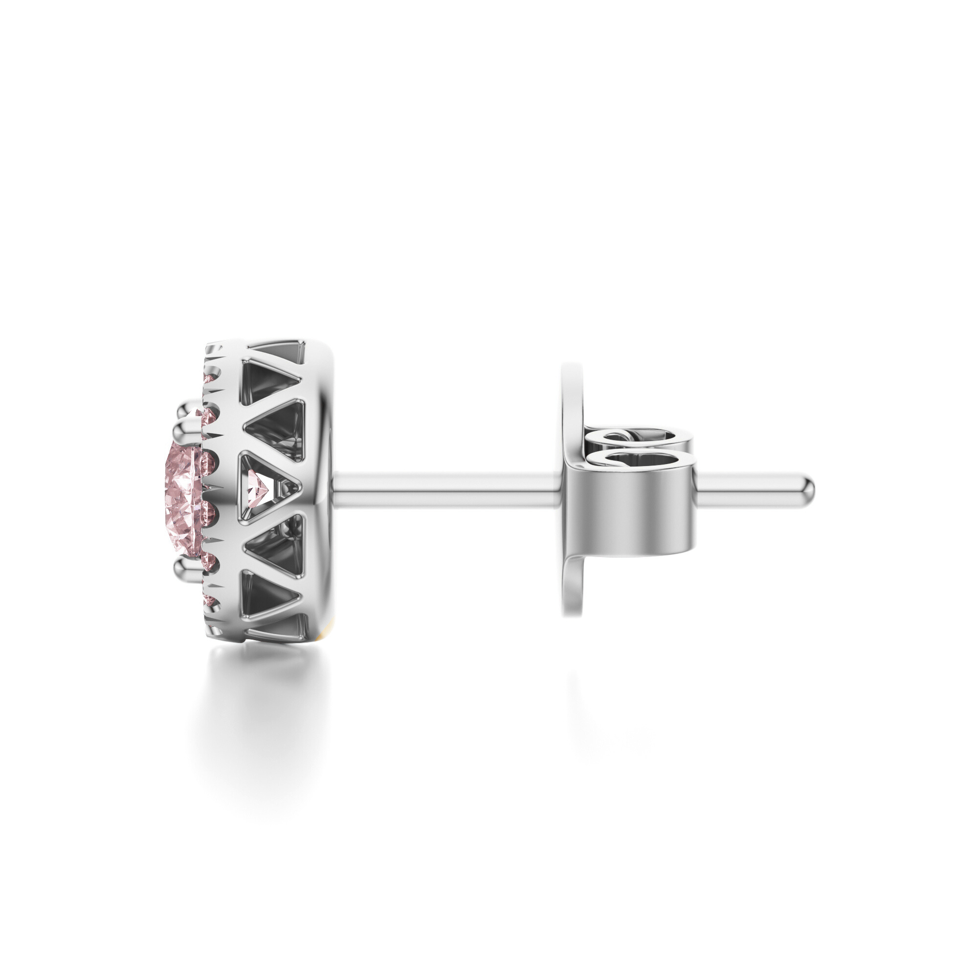 W centrum kolczyków lśni morganit w szlifie brylantowym, otoczony okręgiem połyskujących diamentów. Klasyczna oprawa halo sprawia, że kamień główny zyskuje dodatkową głębię, a cały projekt nabiera trójwymiarowego charakteru. Subtelne proporcje i precyzyjne detale sprawiają, że biżuteria prezentuje się wyjątkowo elegancko – idealnie dla kobiet ceniących nowoczesną, ale romantyczną estetykę.
