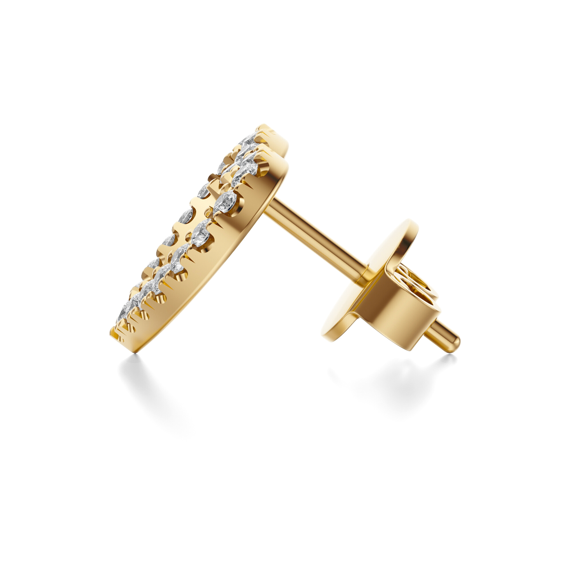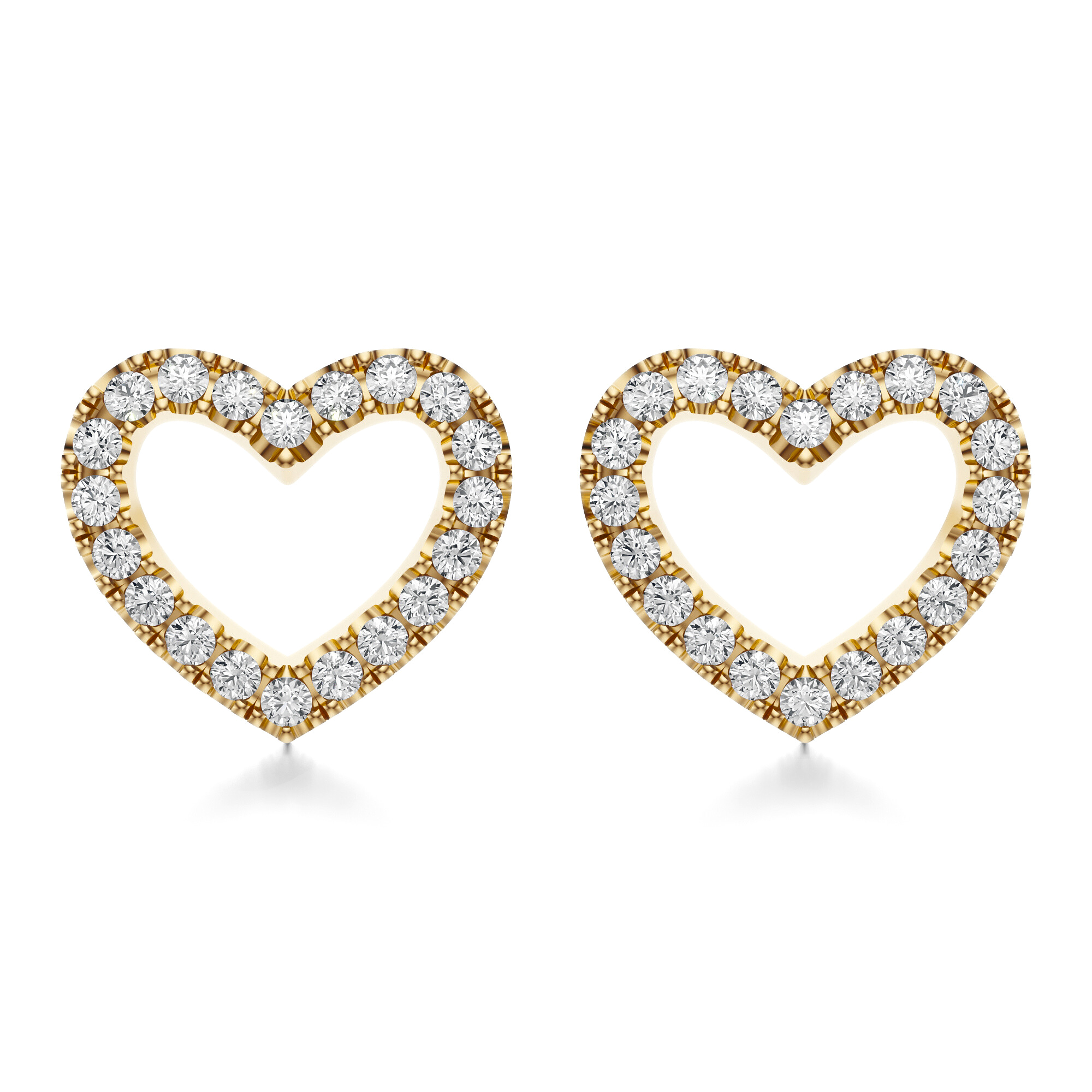 Każdy z kolczyków przyjmuje formę delikatnego serca, które zostało misternie ozdobione szeregiem lśniących diamentów. Starannie oszlifowane kamienie zachwycają czystością i blaskiem, podkreślając miękką linię romantycznego wzoru. W zestawieniu z ciepłym odcieniem żółtego złota całość zyskuje wyjątkową harmonię i elegancję, która nie pozostanie niezauważona.