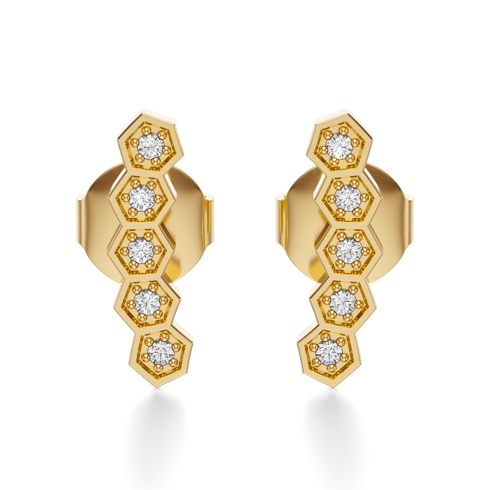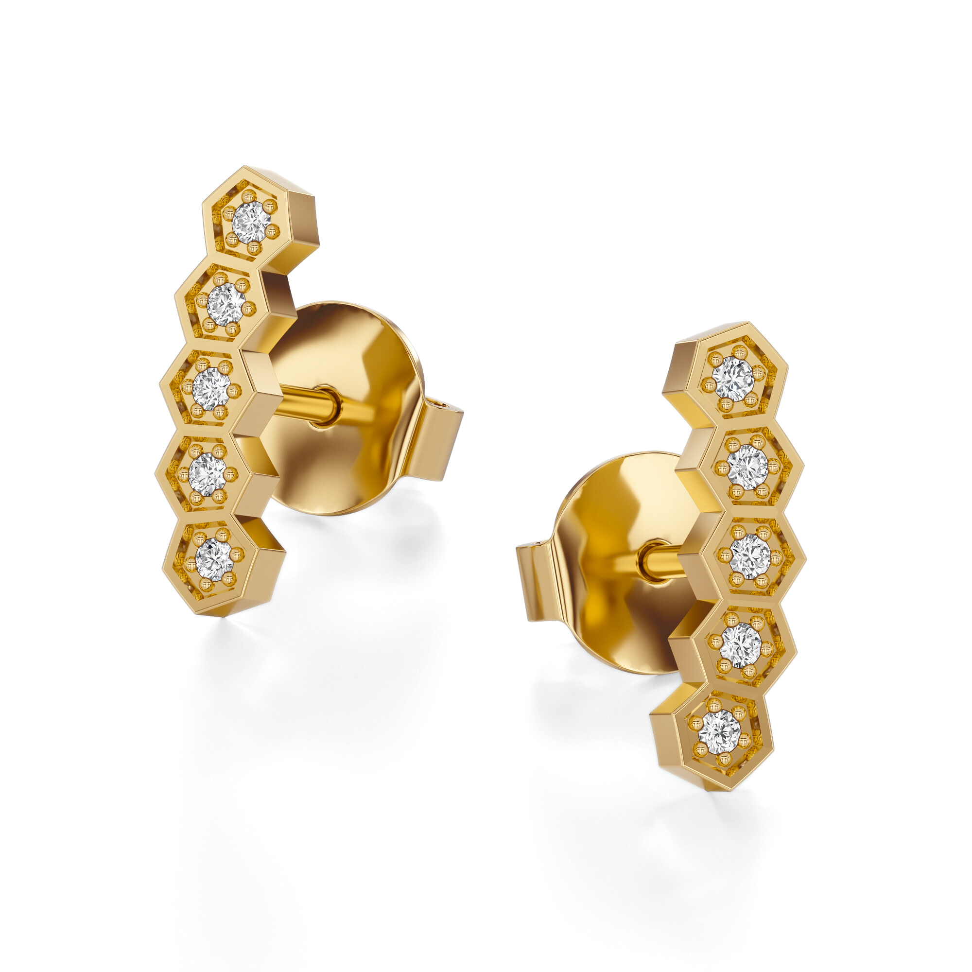 Kolczyki z diamentami w żółtym złocie to propozycja dla kobiet, które cenią nowoczesny design z nutą klasycznej elegancji. Ich unikalna forma inspirowana jest heksagonalnym motywem, przypominającym strukturę plastra miodu – symbolem harmonii, doskonałości i siły natury.