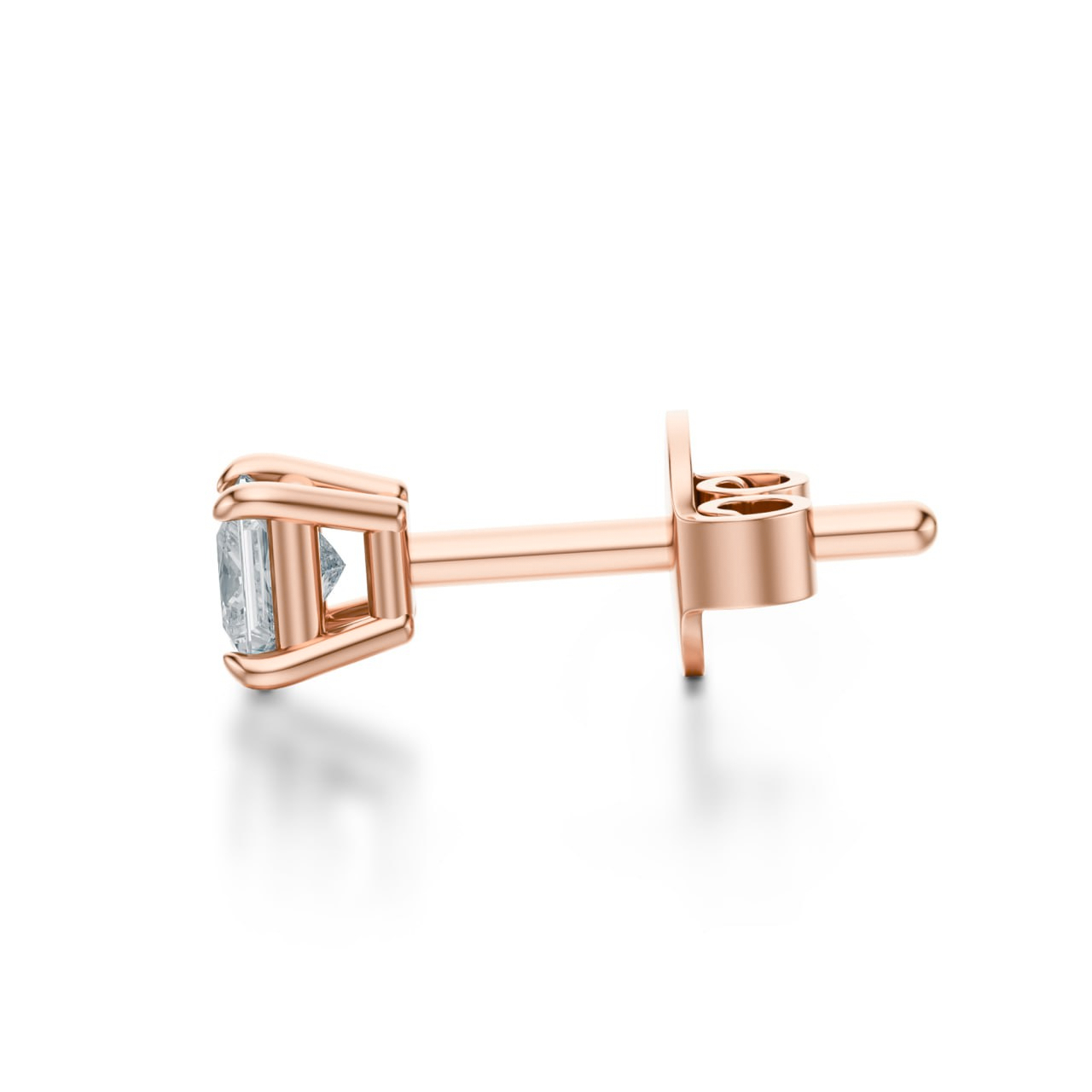 Centralnym punktem każdego kolczyka jest diament o szlifie princess. Jego geometryczna forma zachwyca perfekcyjną symetrią i wyrazistymi liniami, dzięki czemu kamień efektownie odbija światło, tworząc intensywną, a jednocześnie wyrafinowaną grę refleksów. Umieszczone w czterozaczepowej oprawie brylanty prezentują się lekko i elegancko, a delikatna konstrukcja zapewnia, że pełny blask kamienia pozostaje na pierwszym planie.