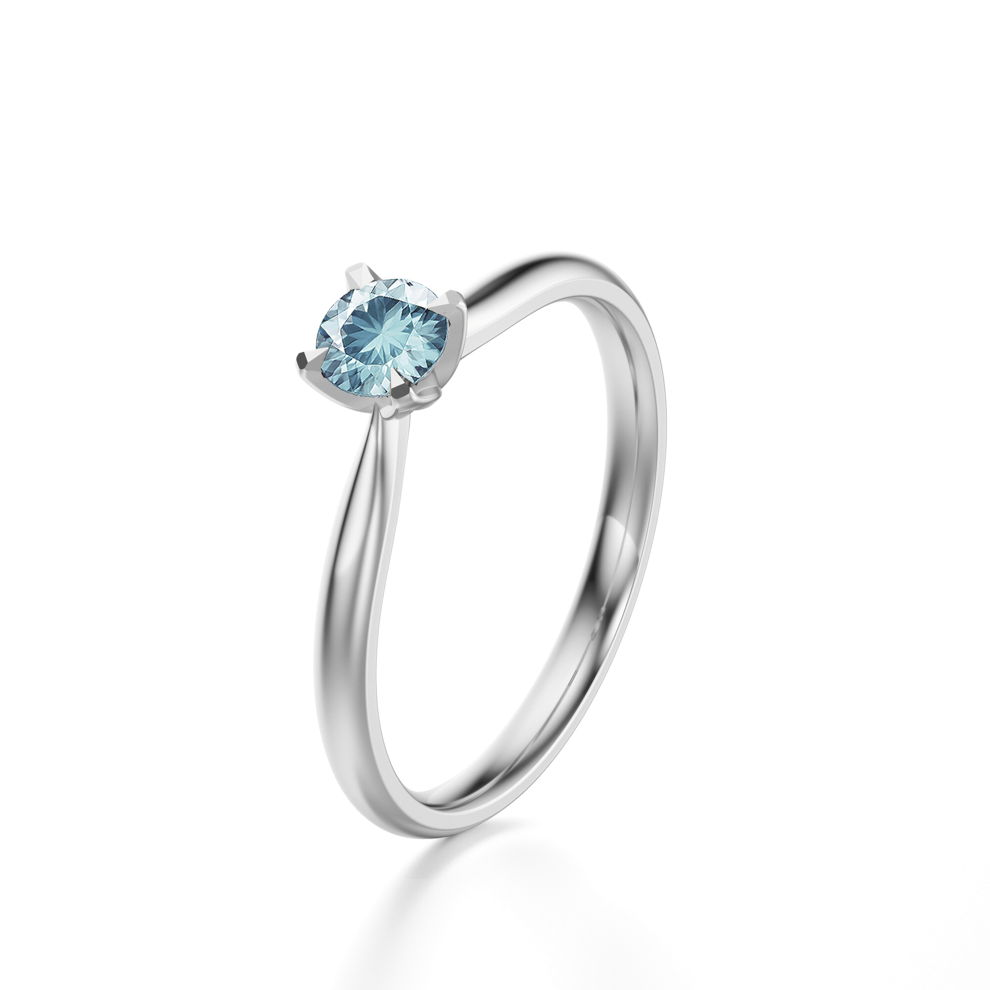 Centralny akwamaryn o szlifie brylantowym olśniewa swoim blaskiem, a minimalistyczna oprawa sprawia, że cała uwaga skupia się na jego świetlistym błękicie. To połączenie prostoty i elegancji, które nigdy nie wychodzi z mody.