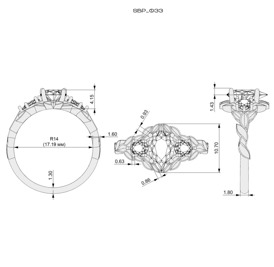Projekt pierścionka inspirowany jest naturą – detalicznie rzeźbione liście delikatnie oplatają kamienie, tworząc harmonijną kompozycję pełną wdzięku. To propozycja dla osób, które cenią niebanalny design i symboliczne znaczenie – liście jako motyw przewodni oznaczają rozwój, odrodzenie i cykl życia. Diament z kolei symbolizuje niezniszczalność uczucia, a szafiry – wierność i głębokie emocje.