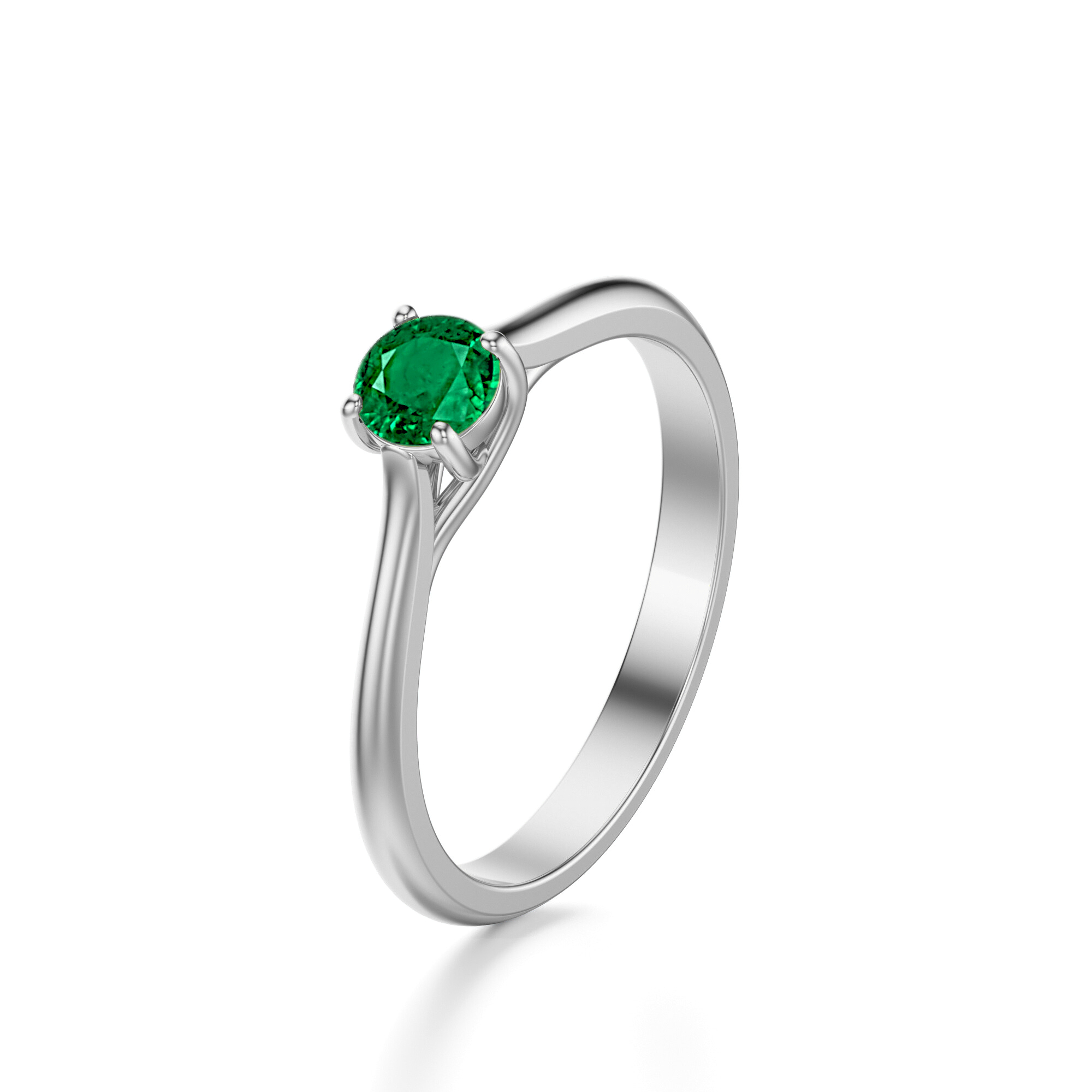 Ten pierścionek zaręczynowy z białego złota próby 585 to połączenie wyrafinowanej elegancji i subtelnej nowoczesności. W centrum kompozycji znajduje się szmaragd o głębokiej, nasyconej zieleni, oszlifowany w szlifie brylantowym, który podkreśla jego naturalny blask i wewnętrzną grę światła. Chłodny, szlachetny odcień kruszcu tworzy z intensywną barwą kamienia harmonijną i ponadczasową całość.