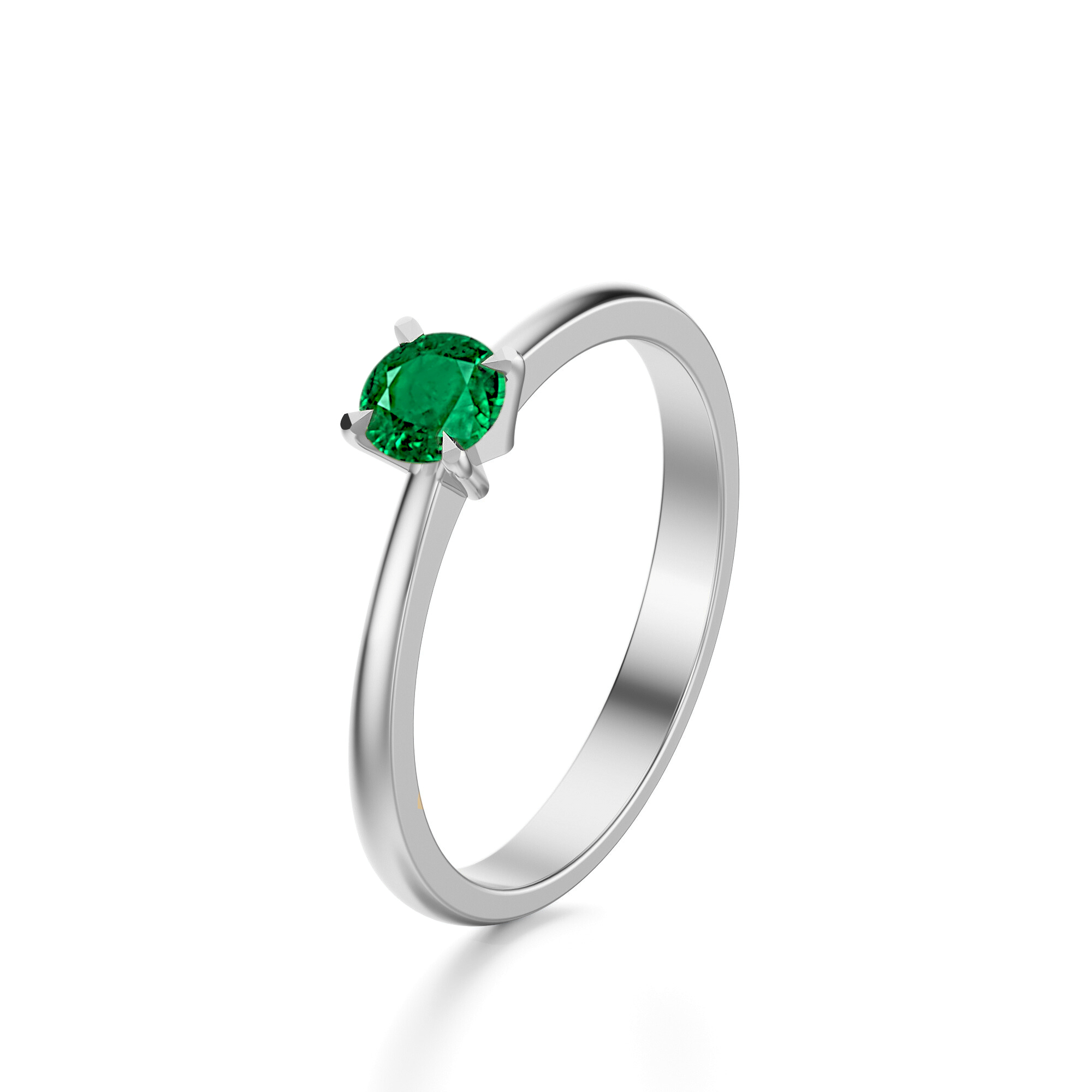 Delikatny, a zarazem niezwykle elegancki pierścionek wykonany z białego złota próby 585 zachwyca swoją minimalistyczną formą i wyrafinowanym blaskiem. W centralnym punkcie kompozycji umieszczono naturalny szmaragd o intensywnie zielonej barwie, oprawiony w cztery smukłe łapki. Takie osadzenie kamienia nie tylko podkreśla jego piękno, ale także pozwala światłu wniknąć w głąb, wydobywając pełnię koloru i naturalne refleksy.