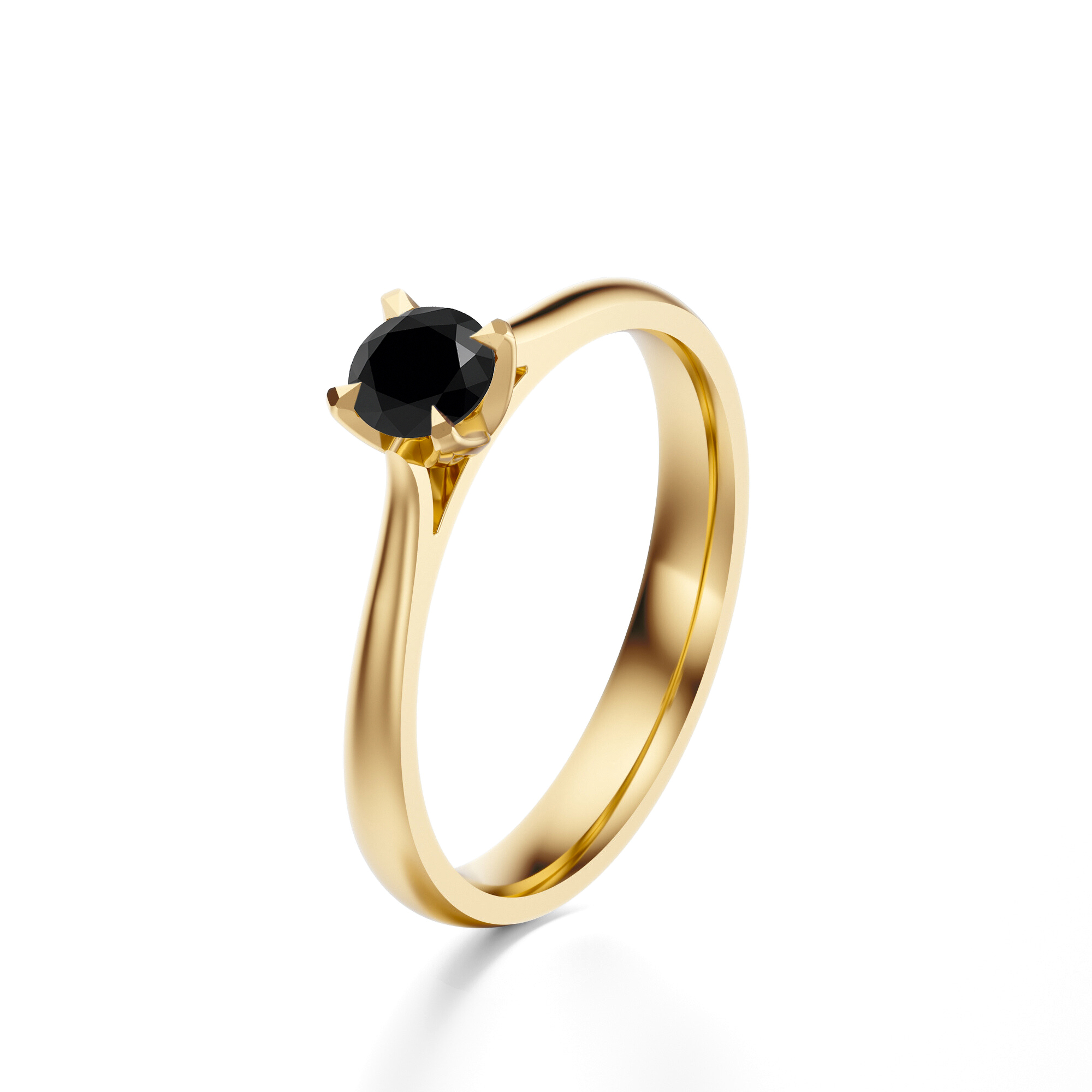 Pierścionek zaręczynowy z czarnym diamentem w żółtym złocie