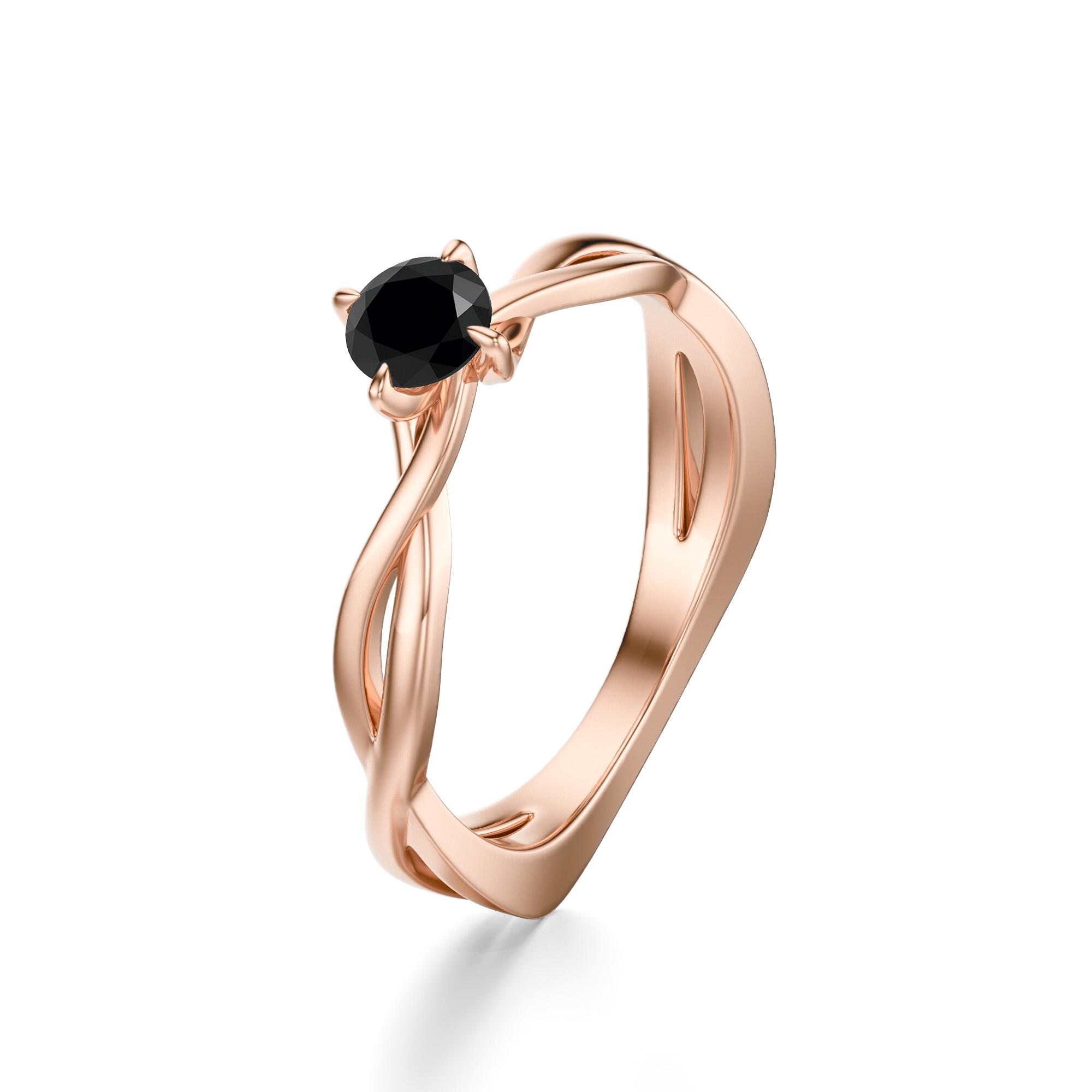 Pierścionek zaręczynowy z czarnym diamentem w różowym złocie ze splecioną szyną