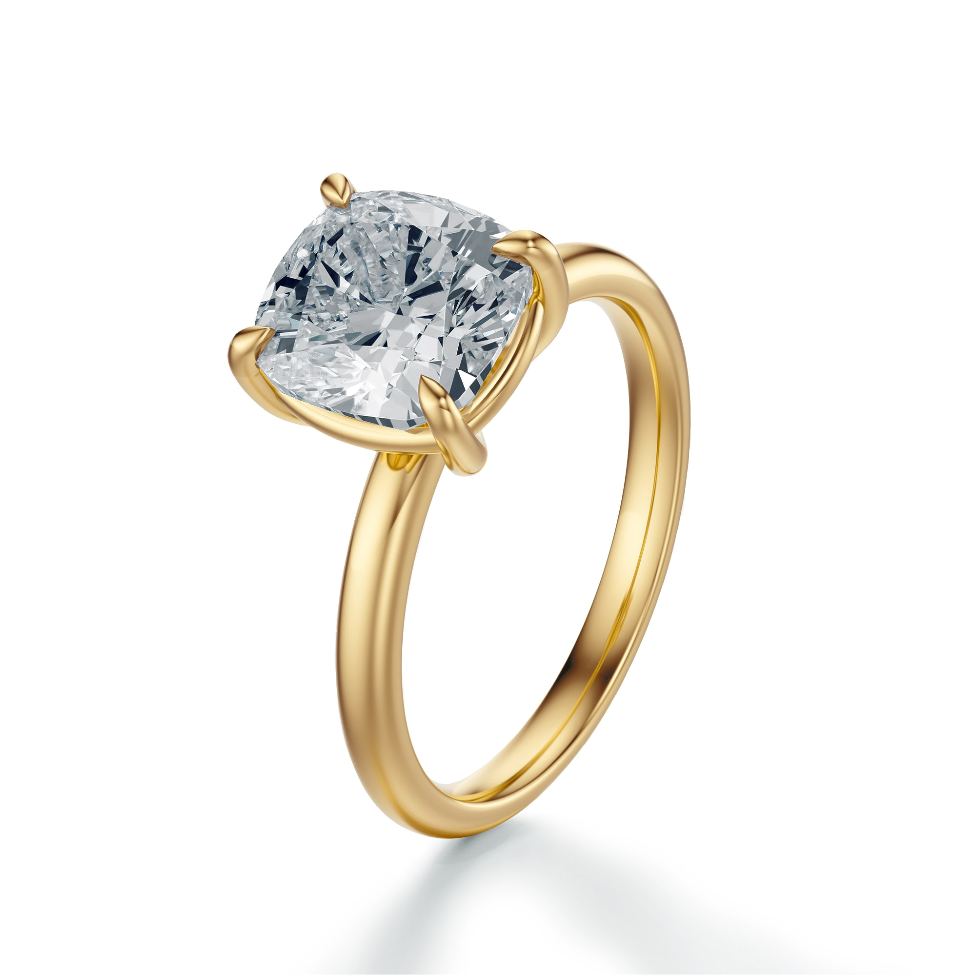 Pierścionek zaręczynowy z diamentem w szlifie poduszkowym (cushion) – żółte złoto