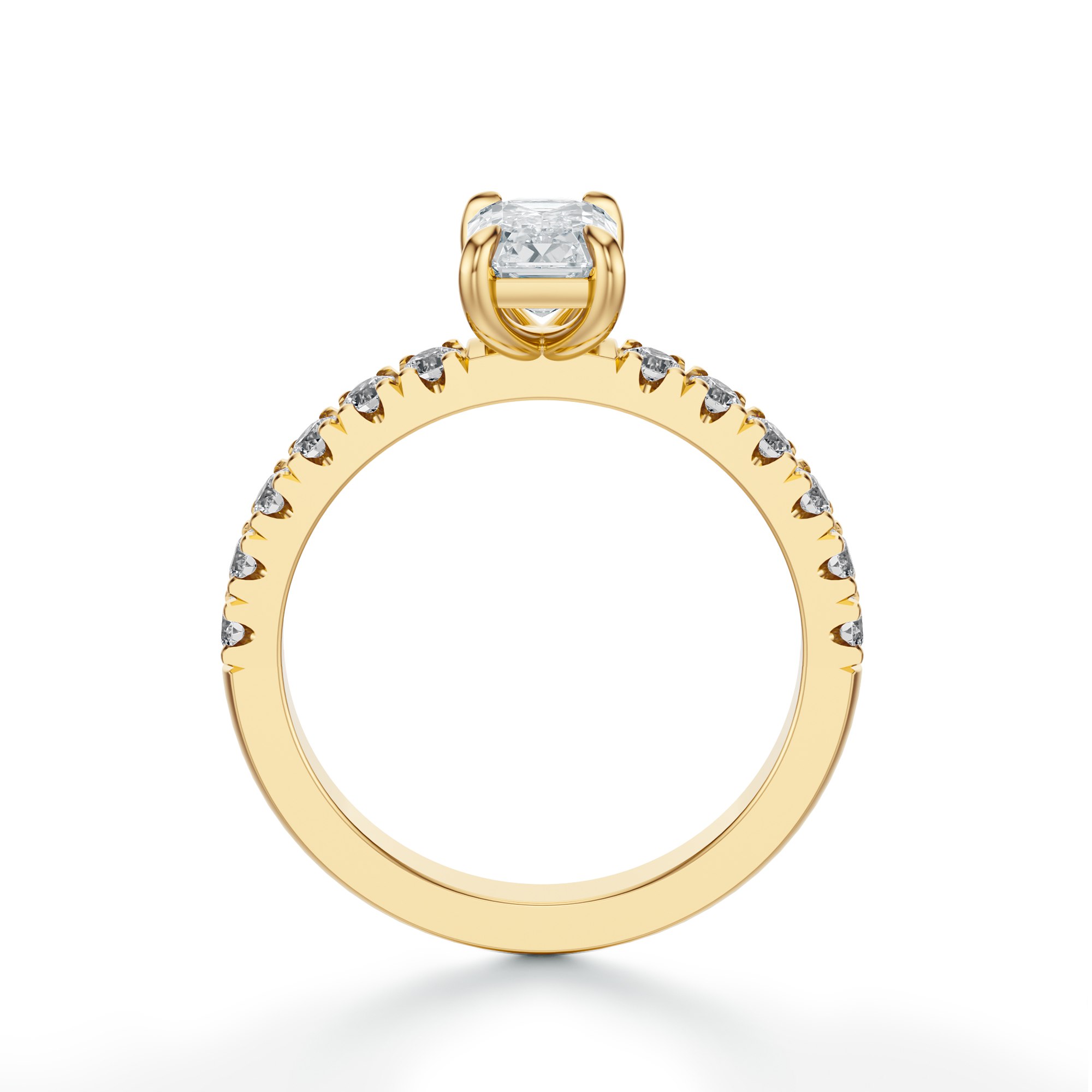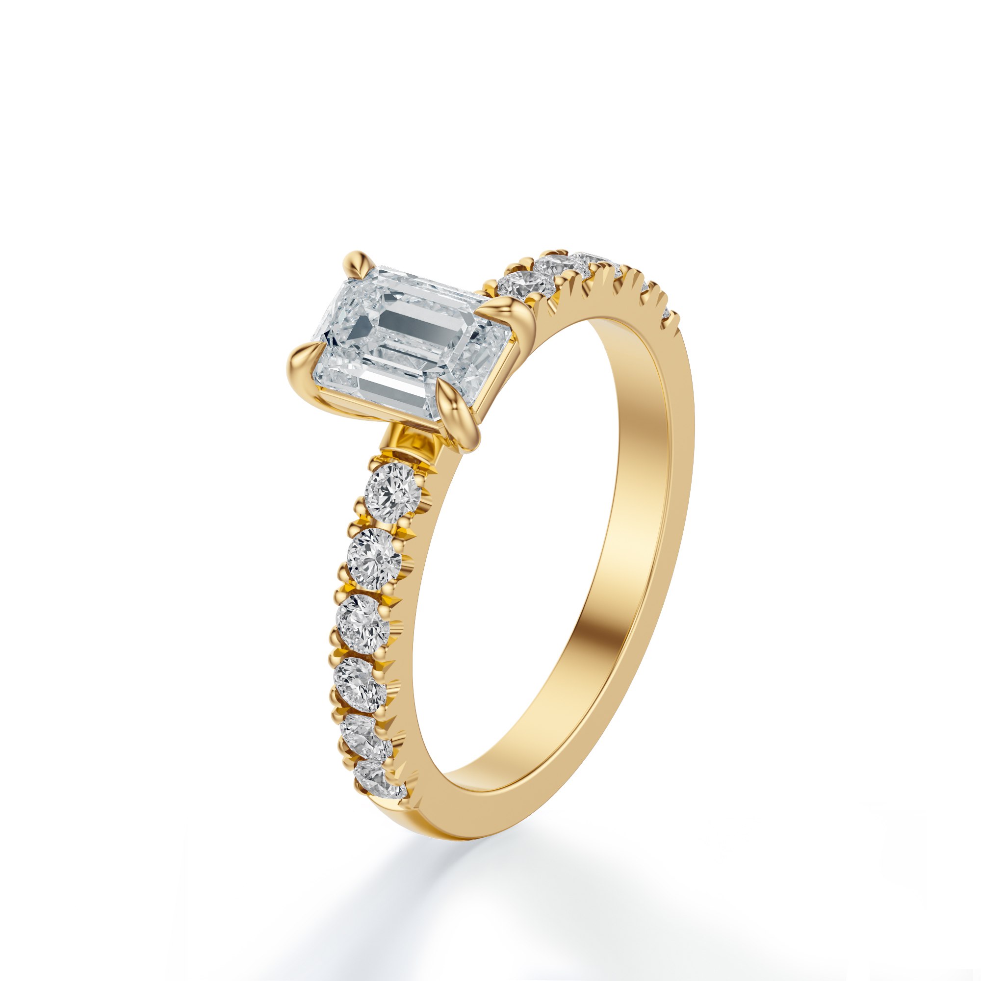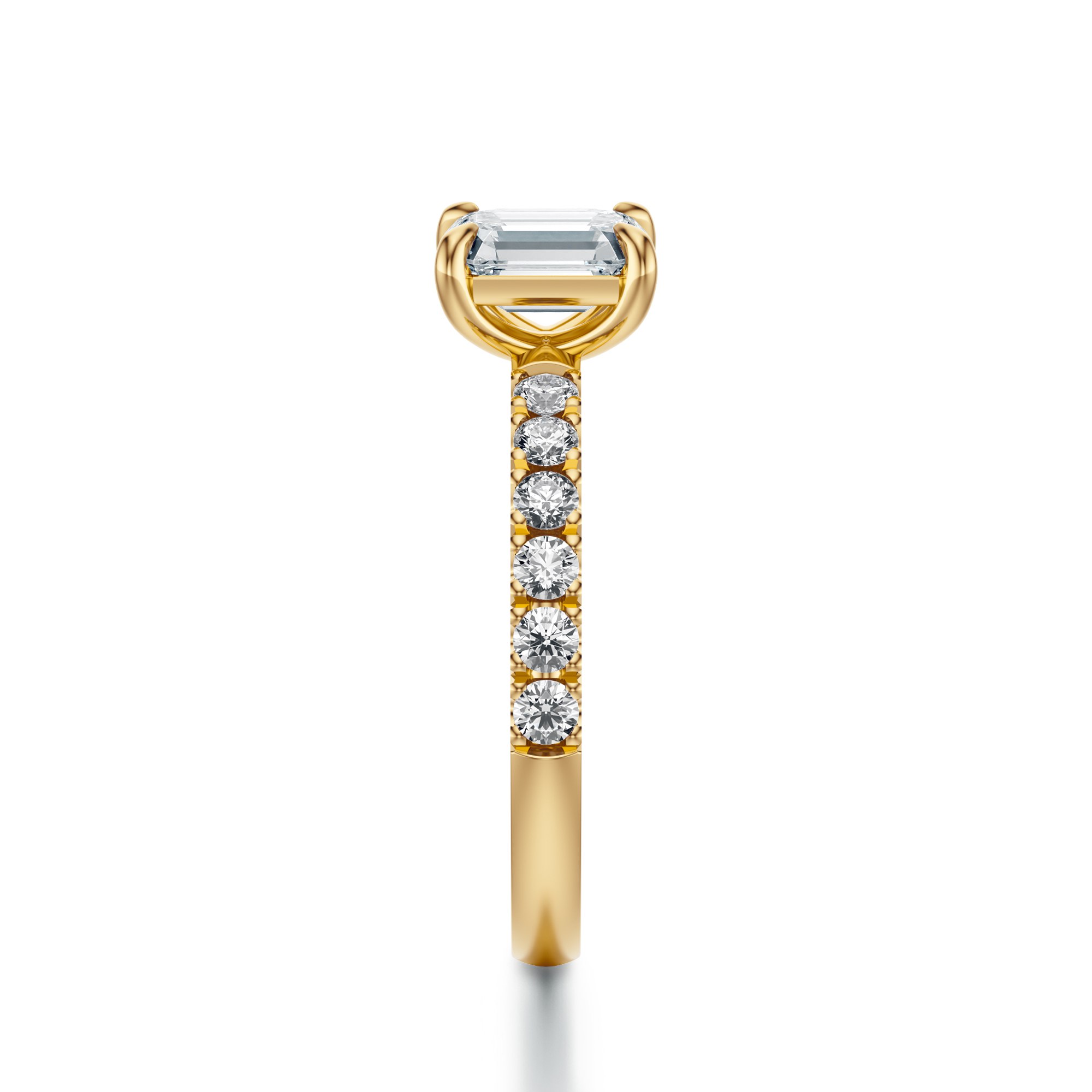 Pierścionek zaręczynowy z diamentem w szlifie szmaragdowym – żółte złoto