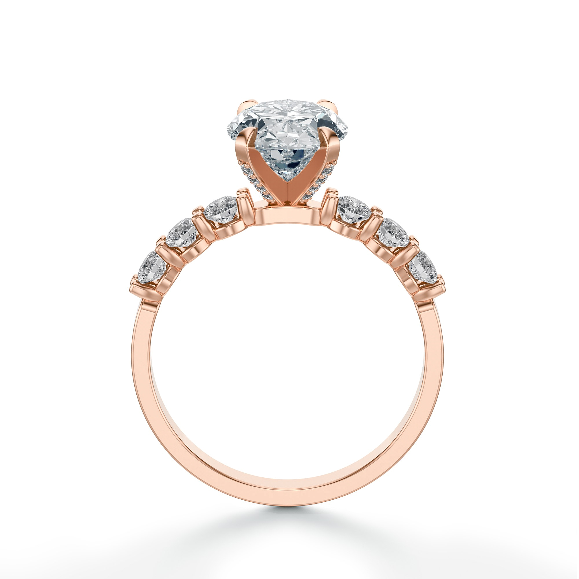 Symbol ponadczasowego piękna, luksusu i wyjątkowych emocji, pierścionek z owalnym diamentem w różowym złocie zachwyca perfekcyjnym szlifem, olśniewającym blaskiem i starannym wykonaniem. To idealny wybór dla osób ceniących wyrafinowany styl, subtelność i niezapomniane momenty, które pozostają w pamięci na całe życie.