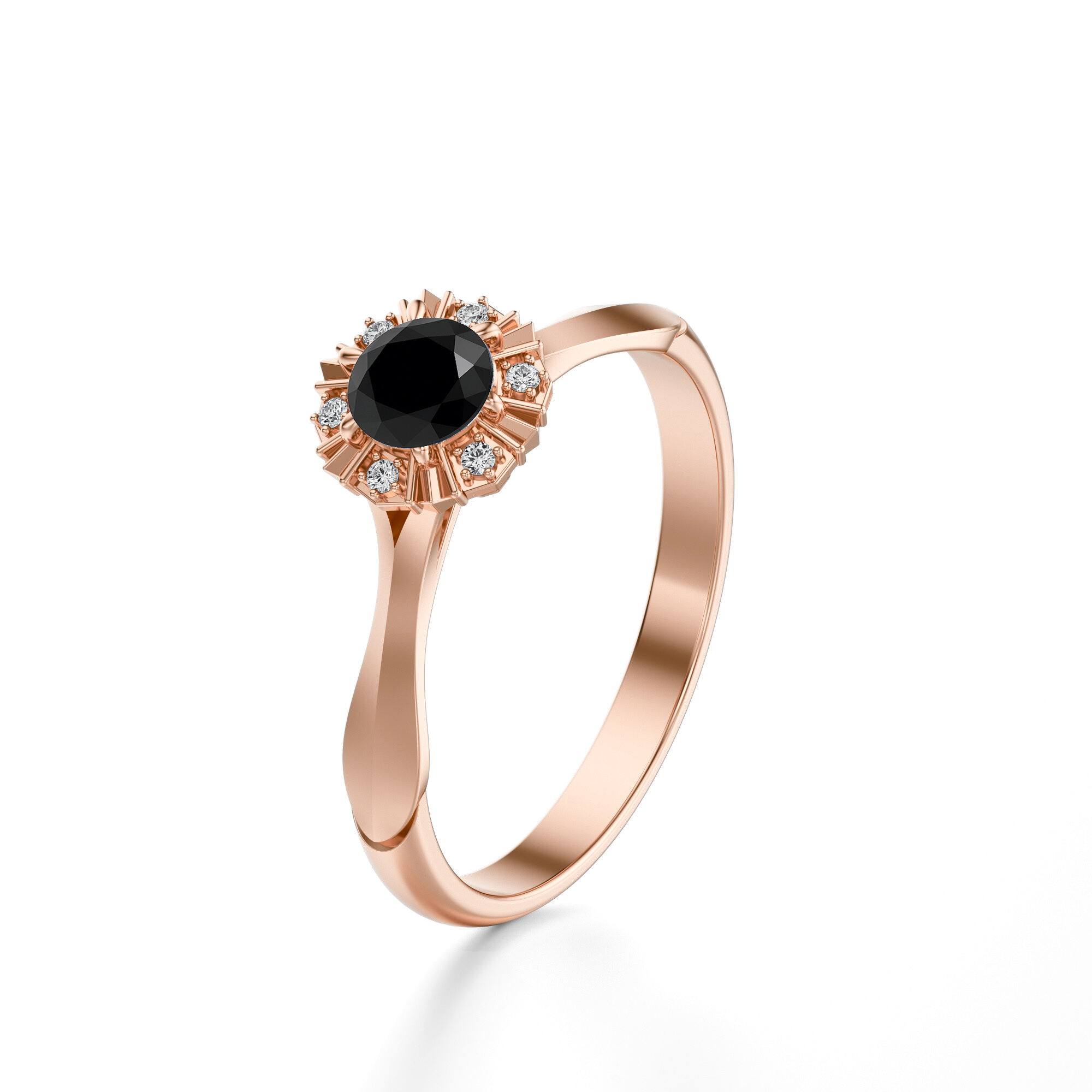 Pierścionek zaręczynowy z czarnym diamentem w różowym złocie