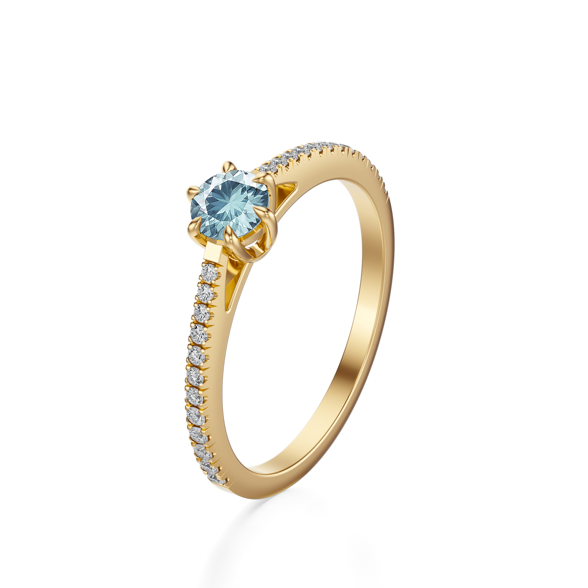 Pierścionek zaręczynowy z akwamarynem i diamentami w żółtym złocie