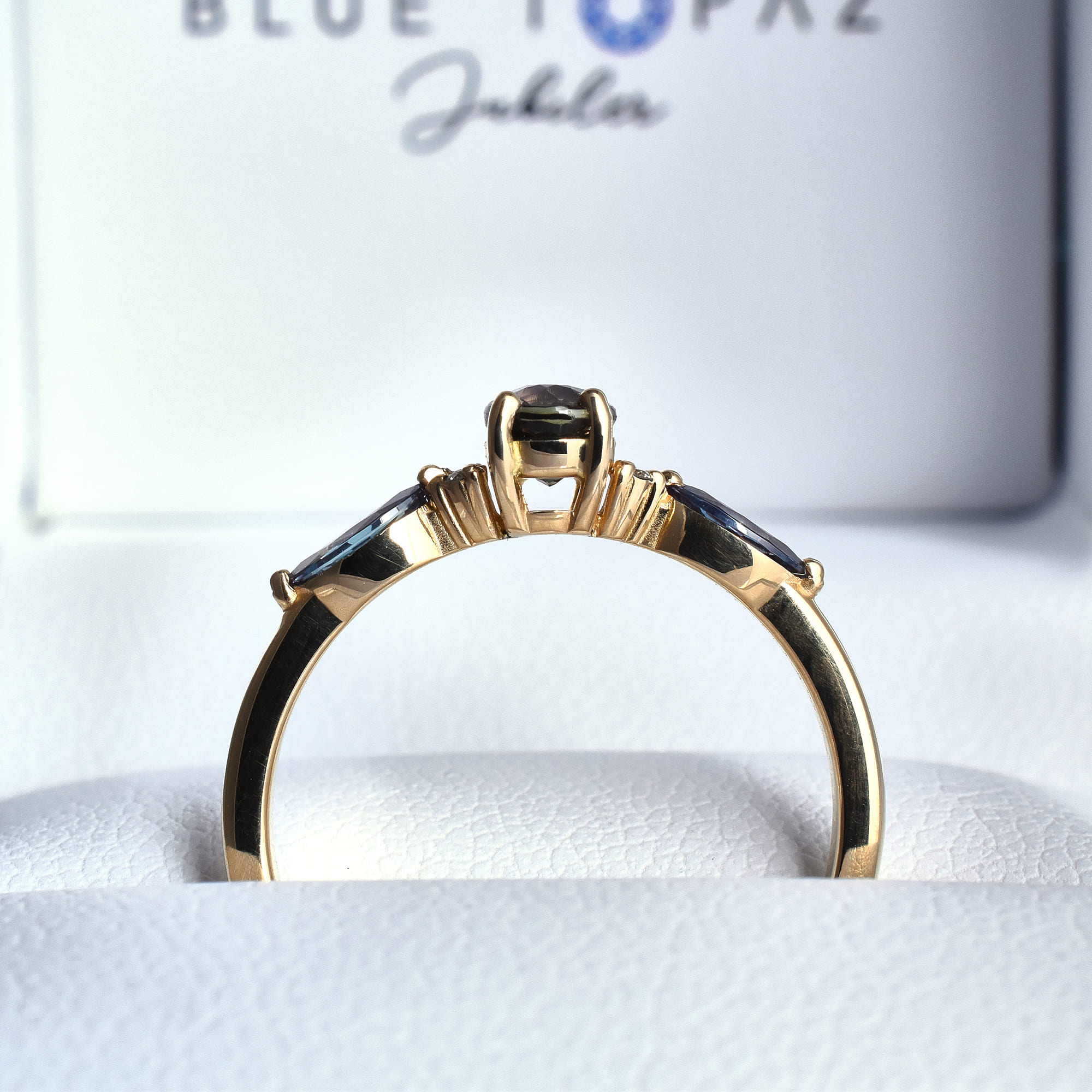 Pierścionek zaręczynowy z aleksandrytem i diamentami