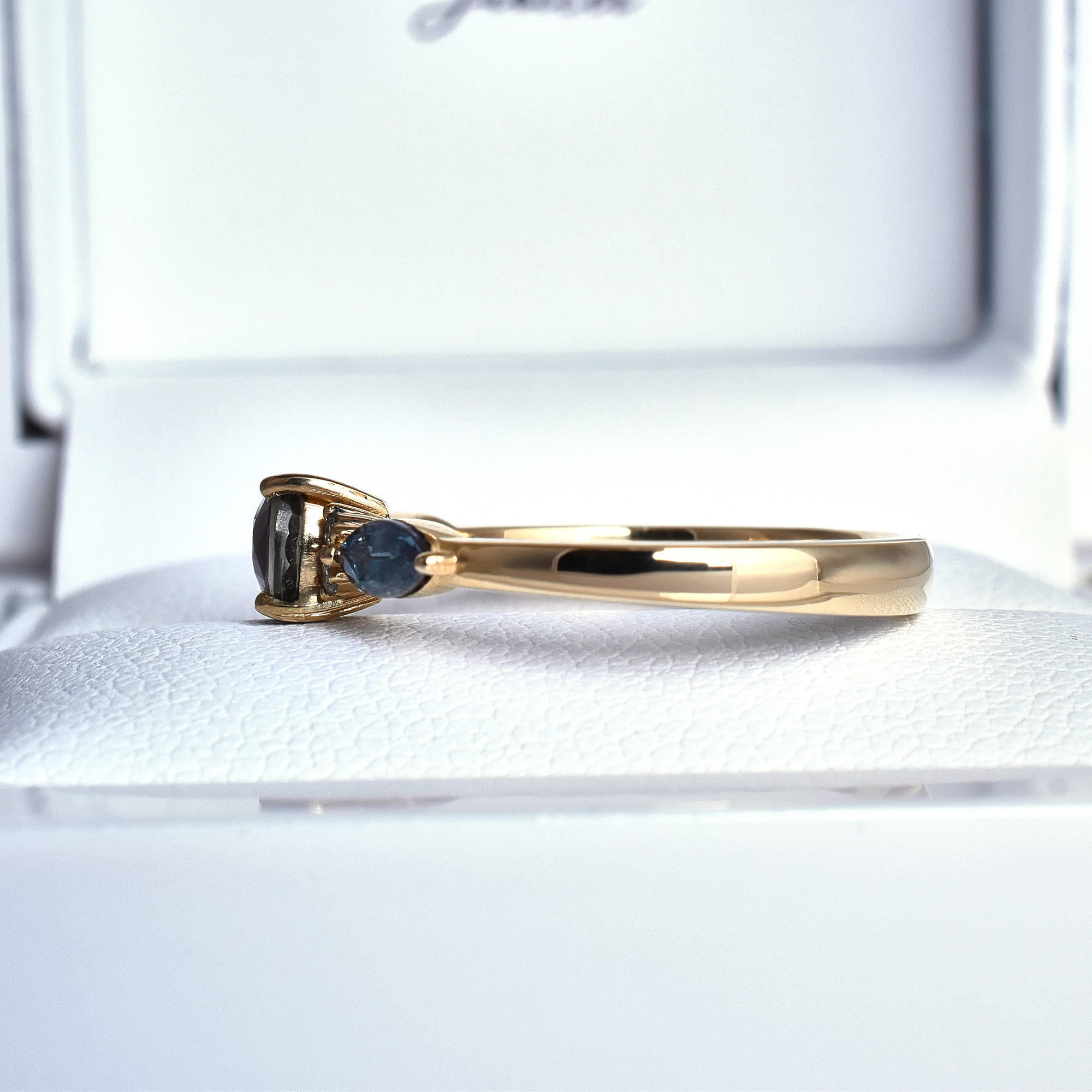 Precyzyjnie wykonana oprawa z żółtego złota podkreśla szlachetny charakter kamieni i gwarantuje trwałość biżuterii na lata. Pierścionek jest zarówno ozdobą codzienną, jak i wyjątkowym akcentem na szczególne okazje – jego ponadczasowa forma sprawia, że nigdy nie wyjdzie z mody.