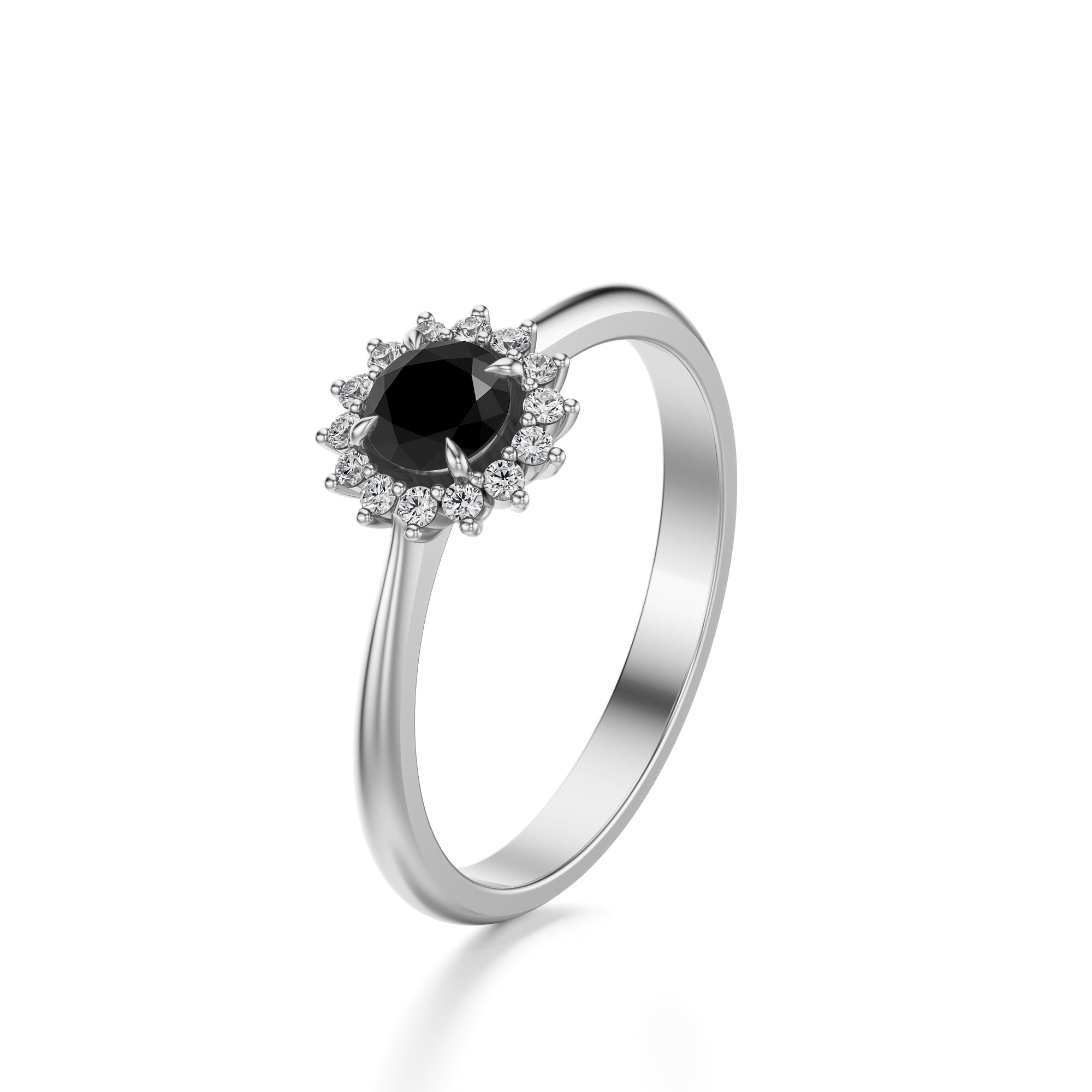 Pierścionek zaręczynowy z czarnym diamentem i brylantami w białym złocie