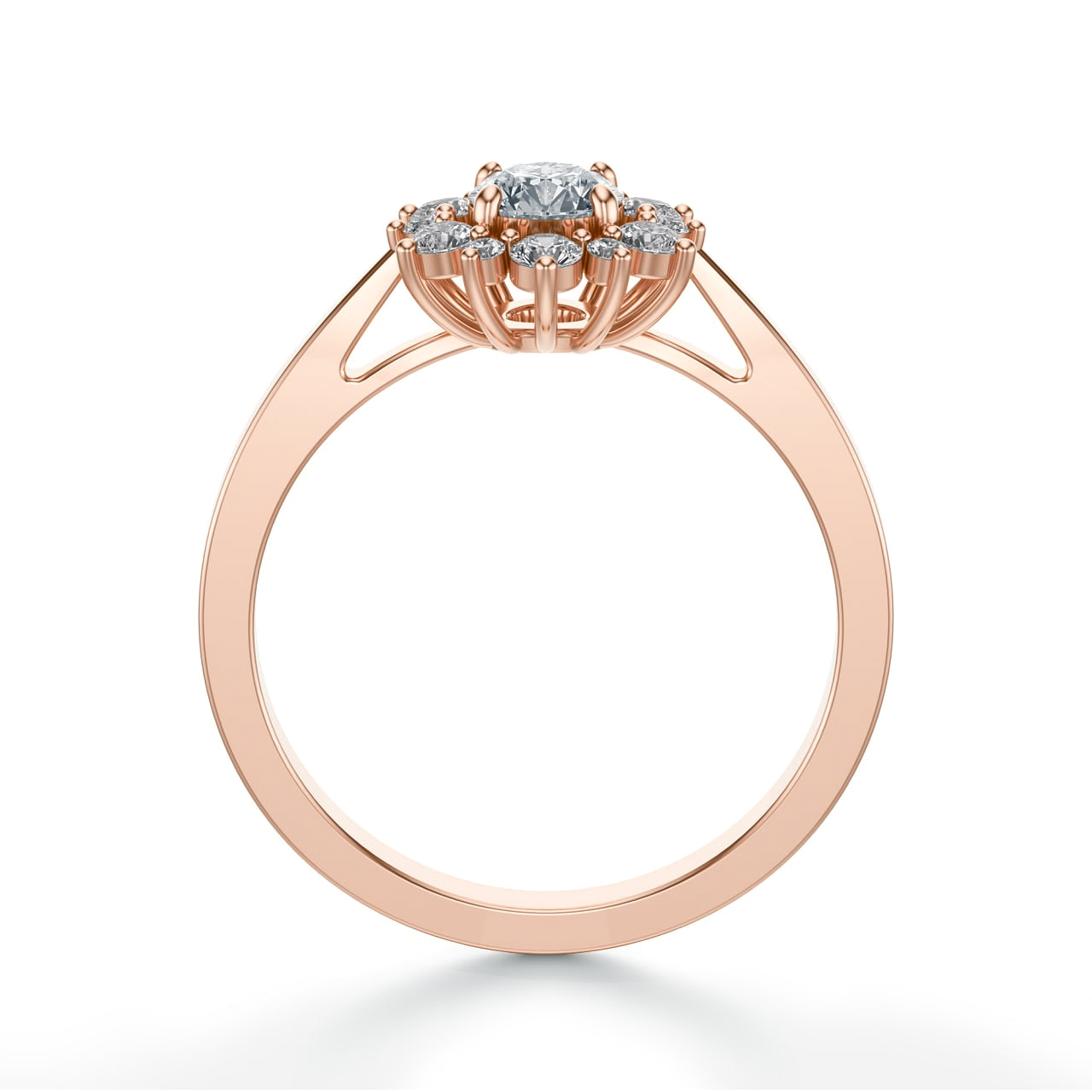 Ten pierścionek zaręczynowy z różowego złota i diamentami w kwiatowej oprawie to idealne połączenie klasyki, romantyzmu i elegancji – biżuteria, która nigdy nie wychodzi z mody.