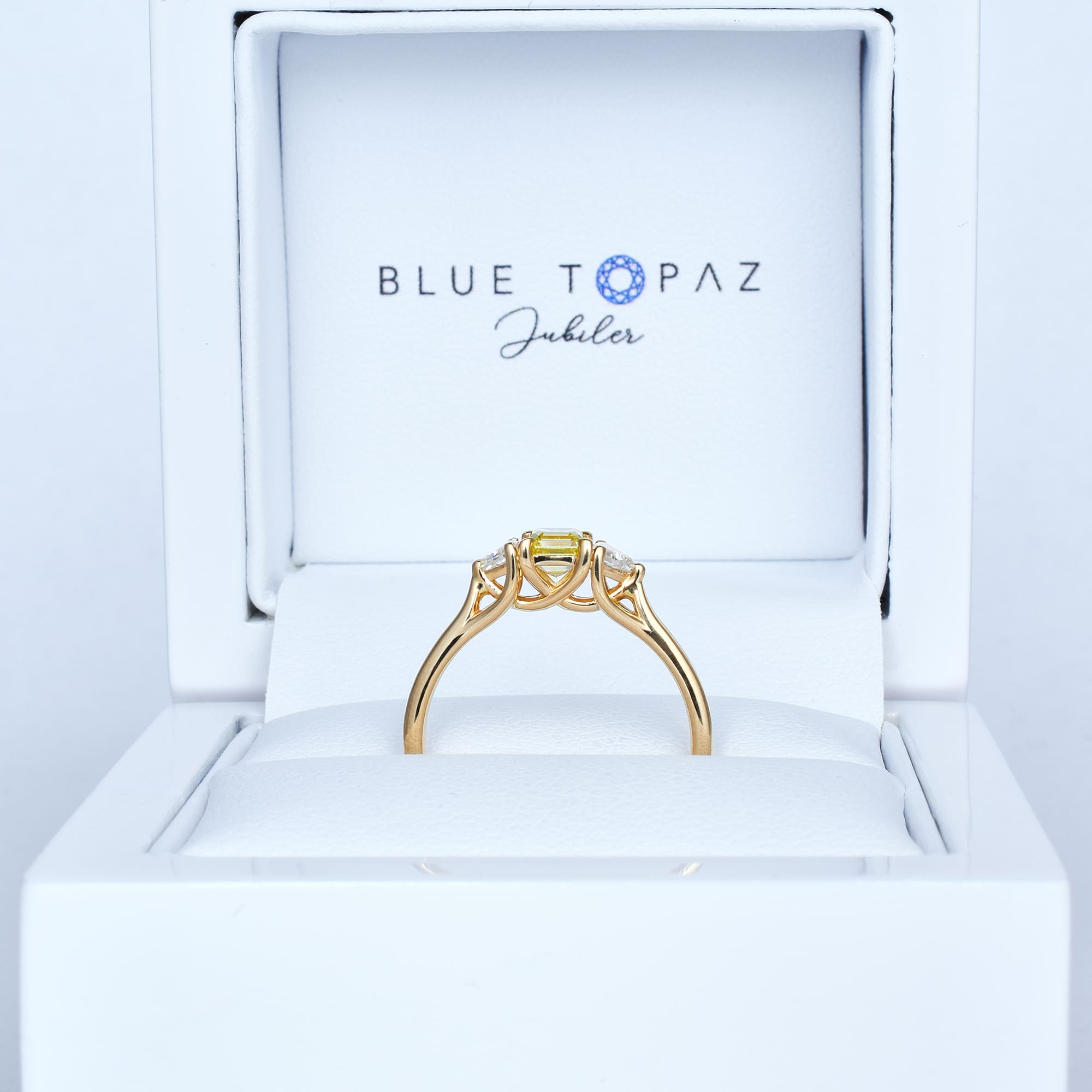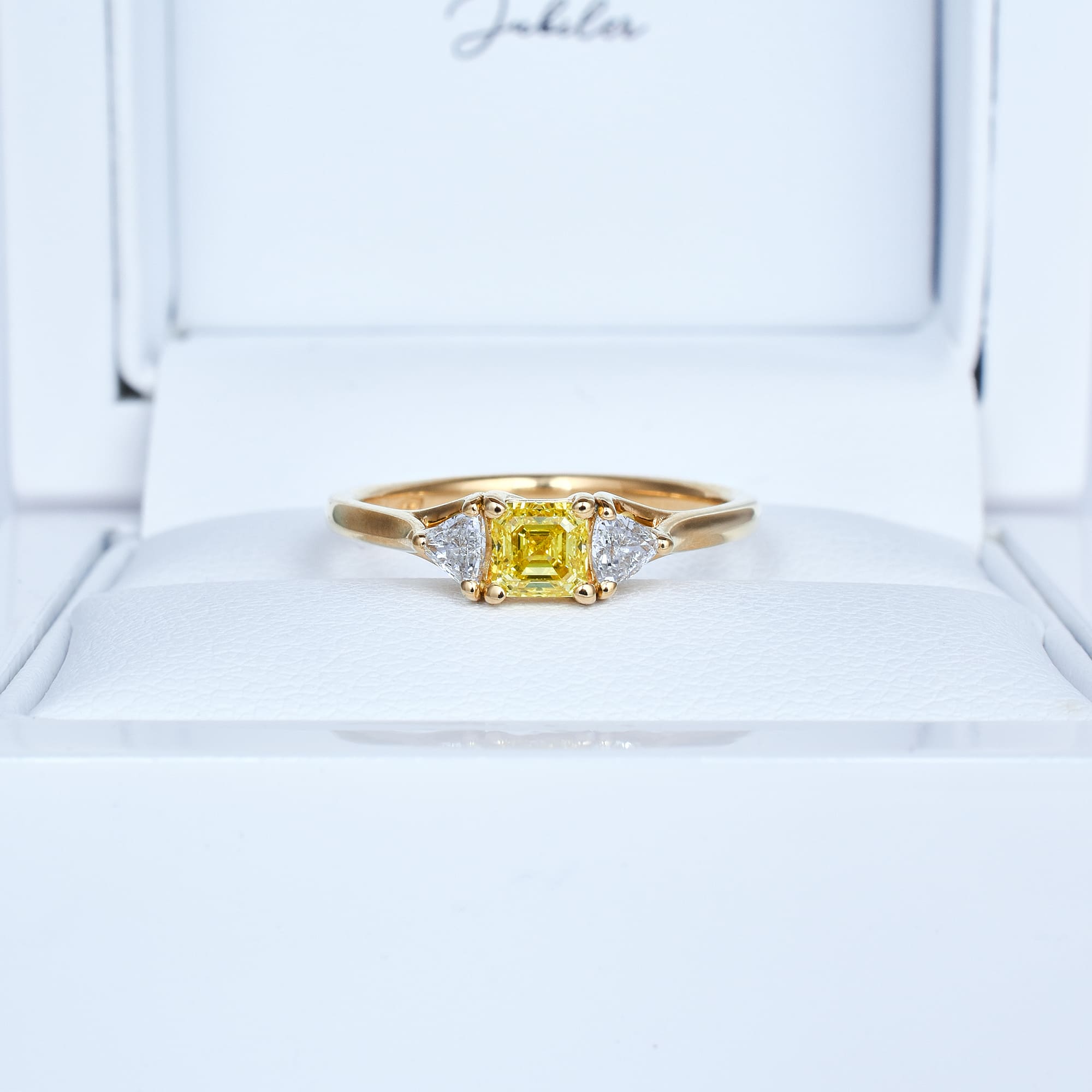 Pierścionek z diamentem Fancy Vivid Yellow w szlifie Square Emerald