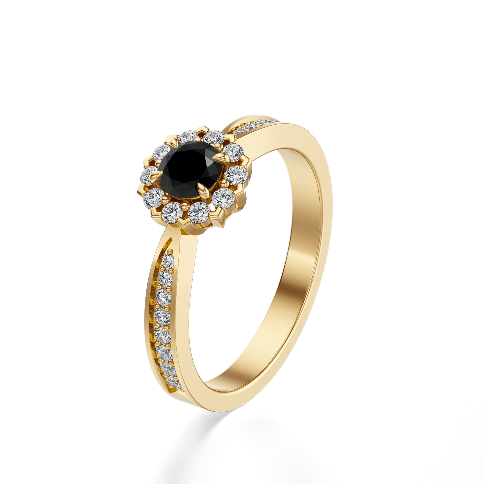 Pierścionek zaręczynowy z czarnym diamentem w żółtym złocie