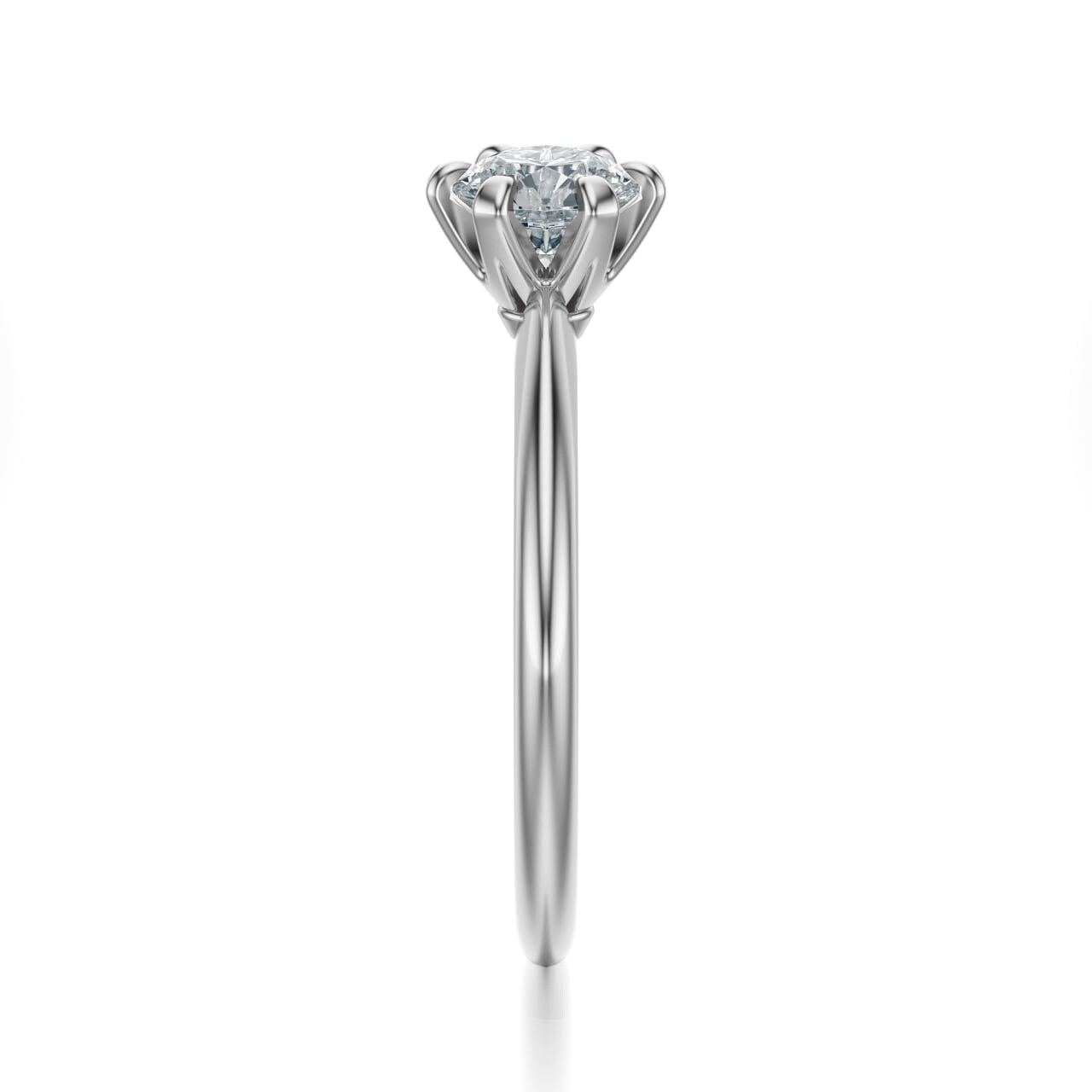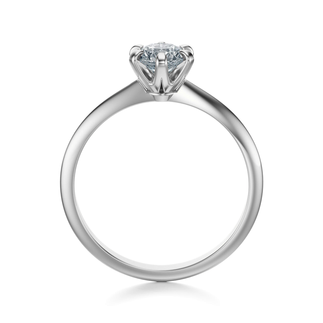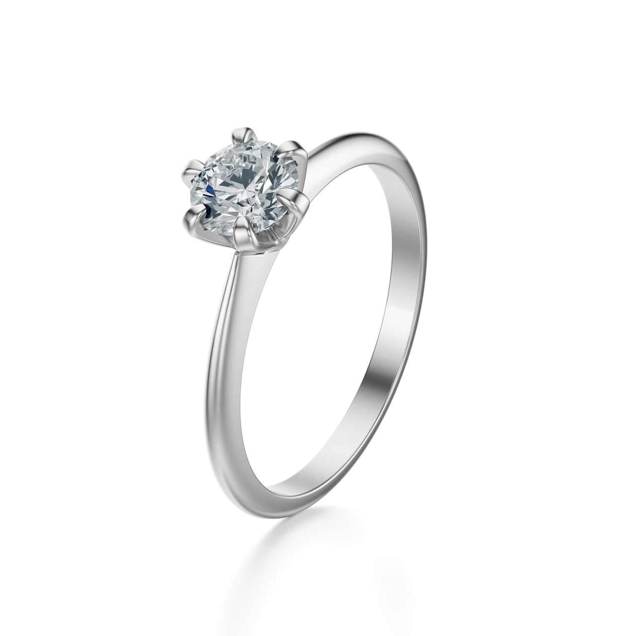 Kamień osadzono w sześcioramiennej koronie, która podkreśla jego naturalny blask i pozwala światłu w pełni rozświetlać fasety brylantu. Dzięki temu diament mieni się olśniewającym ogniem, sprawiając, że pierścionek staje się prawdziwą definicją luksusu i subtelnej elegancji. Smukła obrączka w białym złocie stanowi idealne dopełnienie całości, eksponując klejnot w jego najpiękniejszej formie.